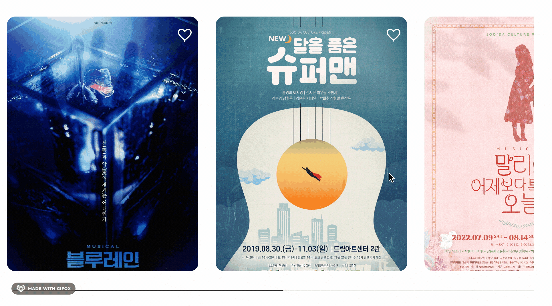 소개드릴 슬라이드 / 캐러셀 UI는 세 가지입니다.