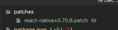 프로젝트 root 경로에 patches 폴더가 생성된 것을 보실 수 있습니다. 해당 파일 안에서 수정사항이 저장된 것을 확인할 수 있습니다.