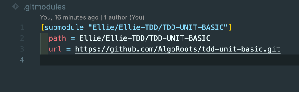 이 작업을 수행하면. gitmodules 파일이 생성되고. git/. config 파일에 서브모듈 관련 내용이 추가됩니다.
