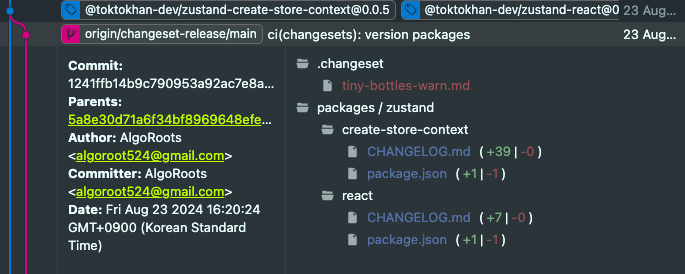자세한 설치와 설정 과정은 생략되었습니다. 실 사용하실 분들께서는 Changesets 공식문서를 참고해 주세요.