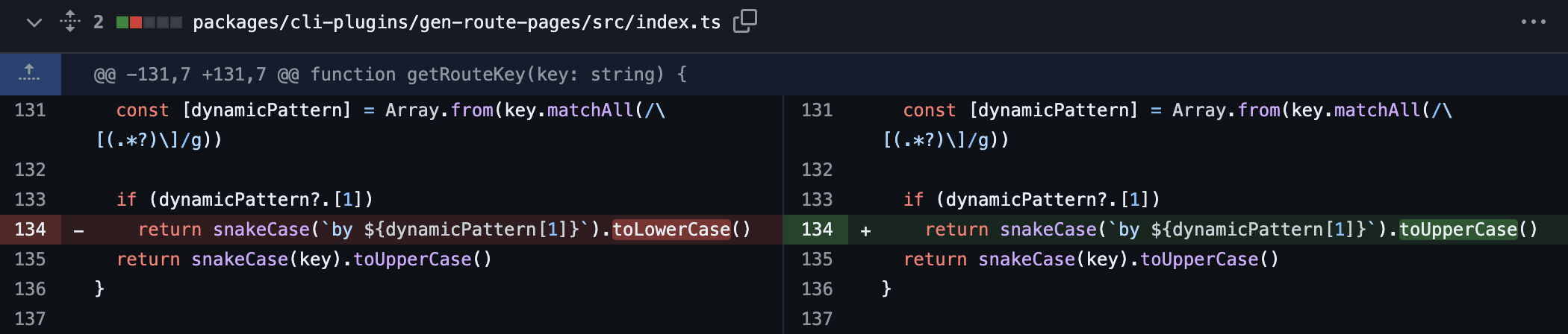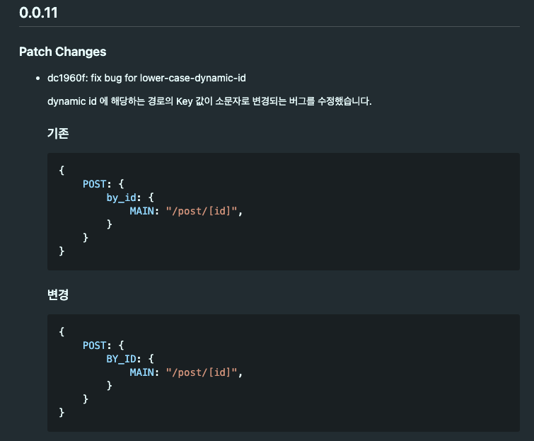 위의 변환된 객체 상수에서 이상한 점이 보이시나요? dynamic id에 해당하는 경로의 key값이 소문자로 변환이 되었습니다. 이는 일관되지 않은 변환 결과로 이슈로 판단이 되네요. 대문자로 수정을 해줍니다.
