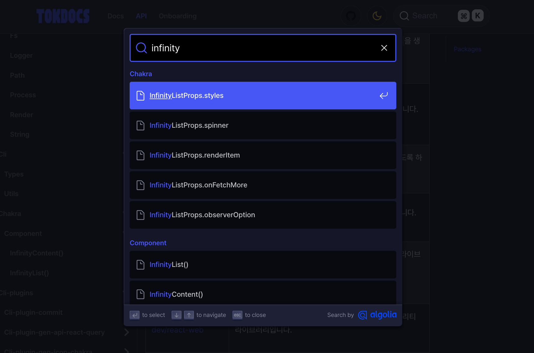 이후 Docusaurus에서 검색엔진은 문서에서 추천하는 Algoria를 사용해 무료로 사용하고 있습니다. 배포를 시키면 인덱싱을 해두어 검색리스트에 반영이 되는 구조입니다. 자세한 과정은 공식문서(Search)를 참조해 주세요.