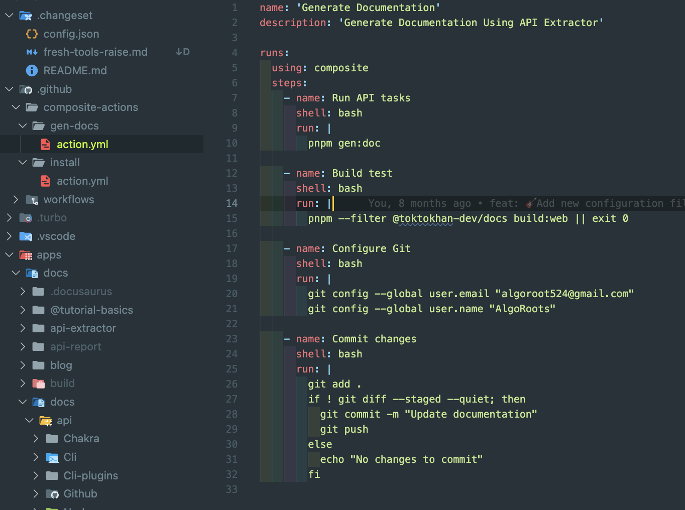 Generate Documentation 액션 과정이 길어지면서 action을 분리할 방법을 찾던 중 composite action에 대해 알게 되었는데 굉장히 유용하게 썼습니다. 관심 있으신 분들을 위해 공식문서를 첨부합니다.