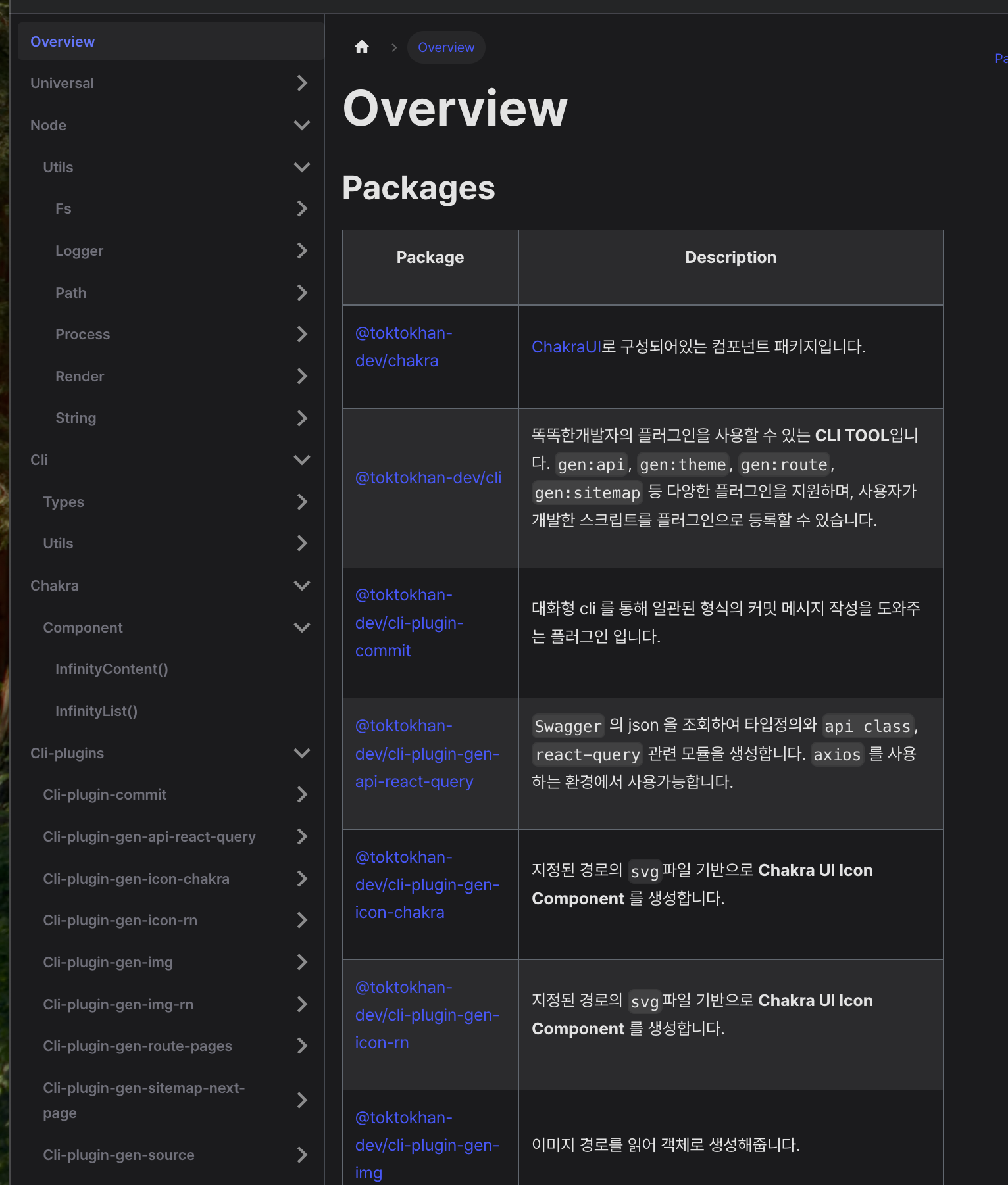 보일러플레이트에서 응집되어 있던 utils, hooks을 용도에 맞게 패키지로 분리하면서, 관리적과 성능적으로는 이점이 있었지만, 실무진 분들이 어떠한 함수를 가져오기 위해 참고할 수 있는 문서가 필요했습니다.