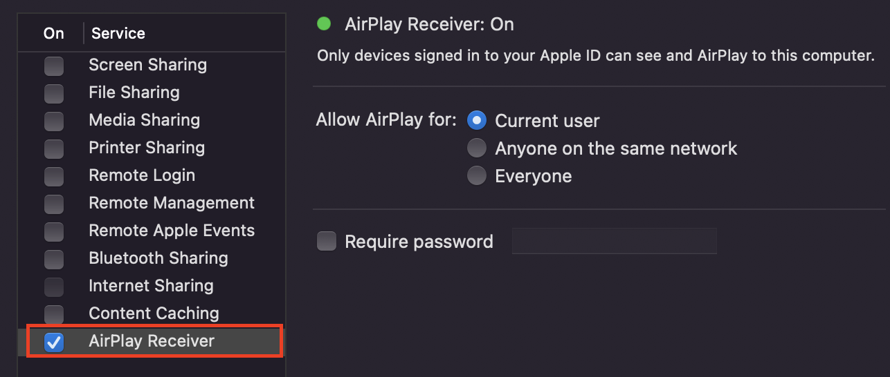 그냥 다시 AirPlay Receiver체크 해제했던걸 켜주면 된다. 이미 5000 port를 파이썬과 연결해놓은 상태이기 때문에 AirPlay Receiver(ControlCe)은 새로운 port번호로 잡히게 된다.