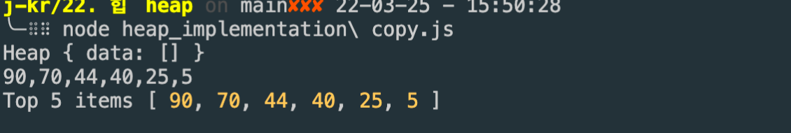 여기서 핵심은 push() 메서드 안에 있는 heapifyUp()이다. 이 함수를 통해 Max-Heap 형태를 갖추도록 조정된다.